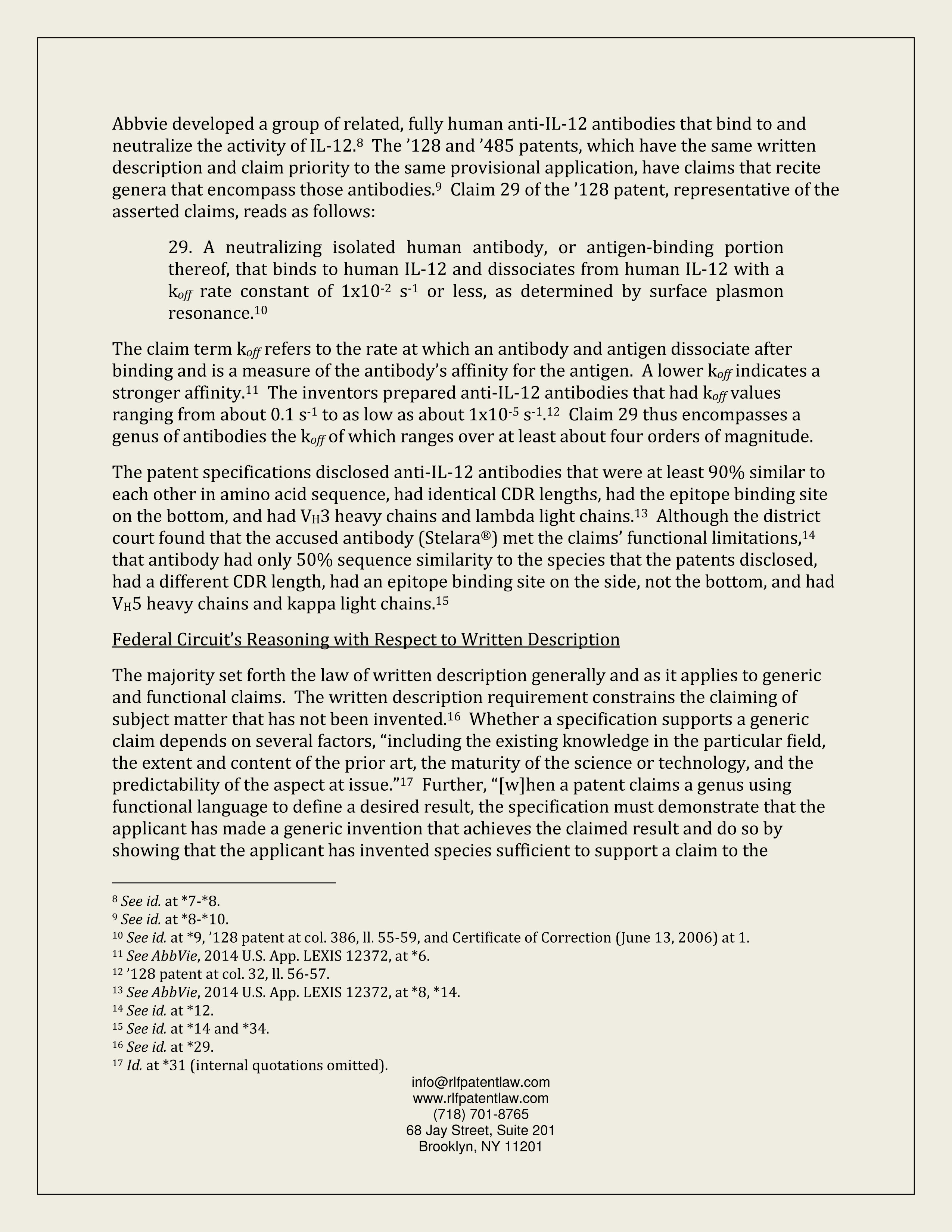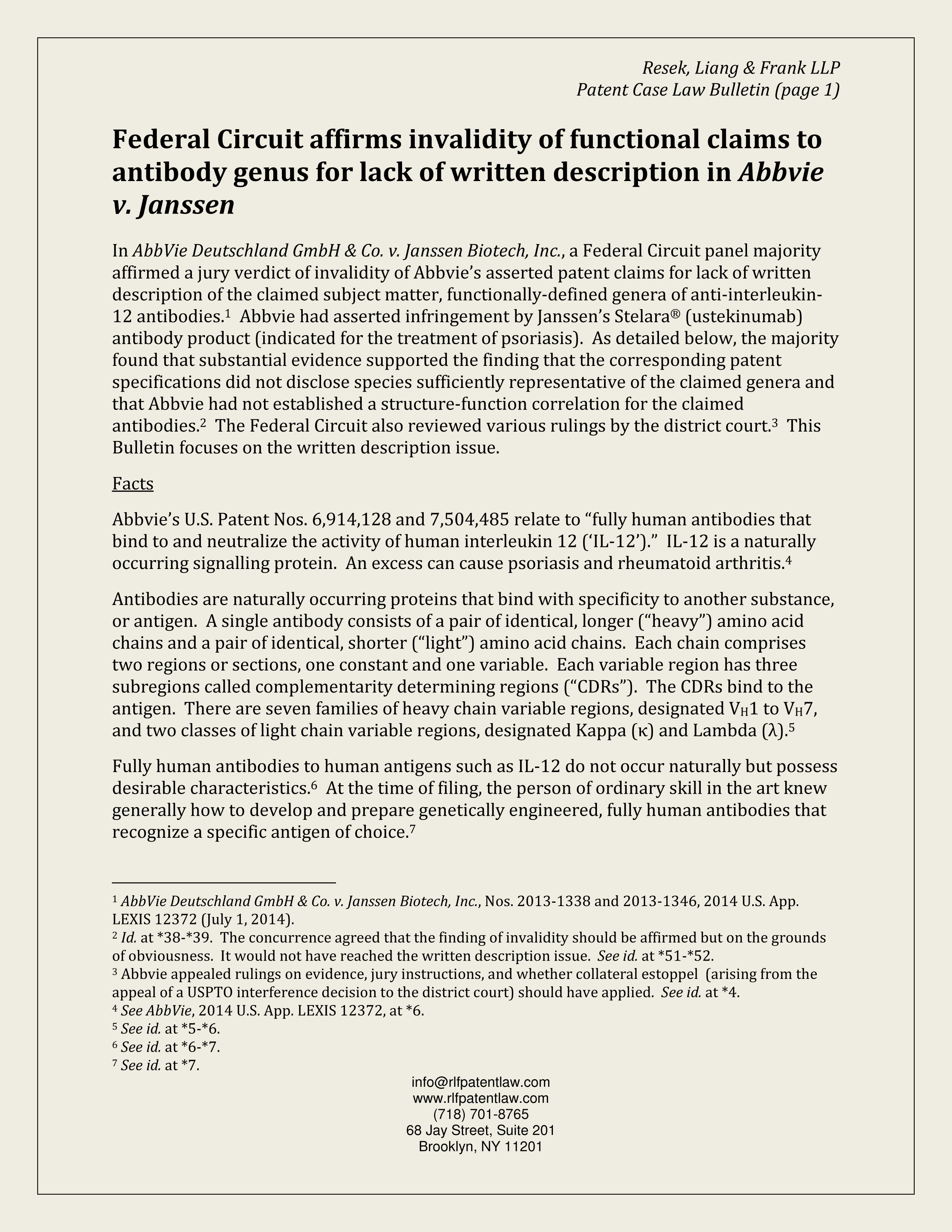 Janssen (biotech/written description/invalidity of claims to antibody genus)