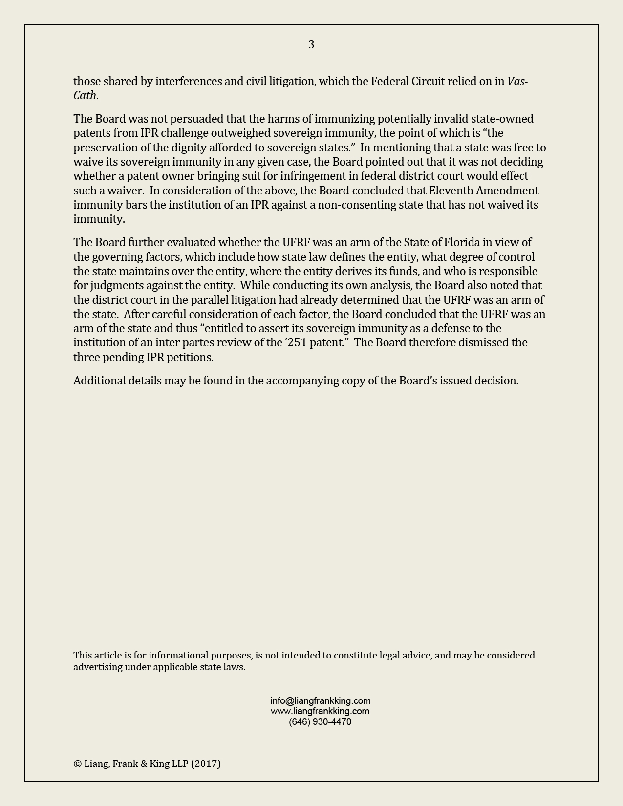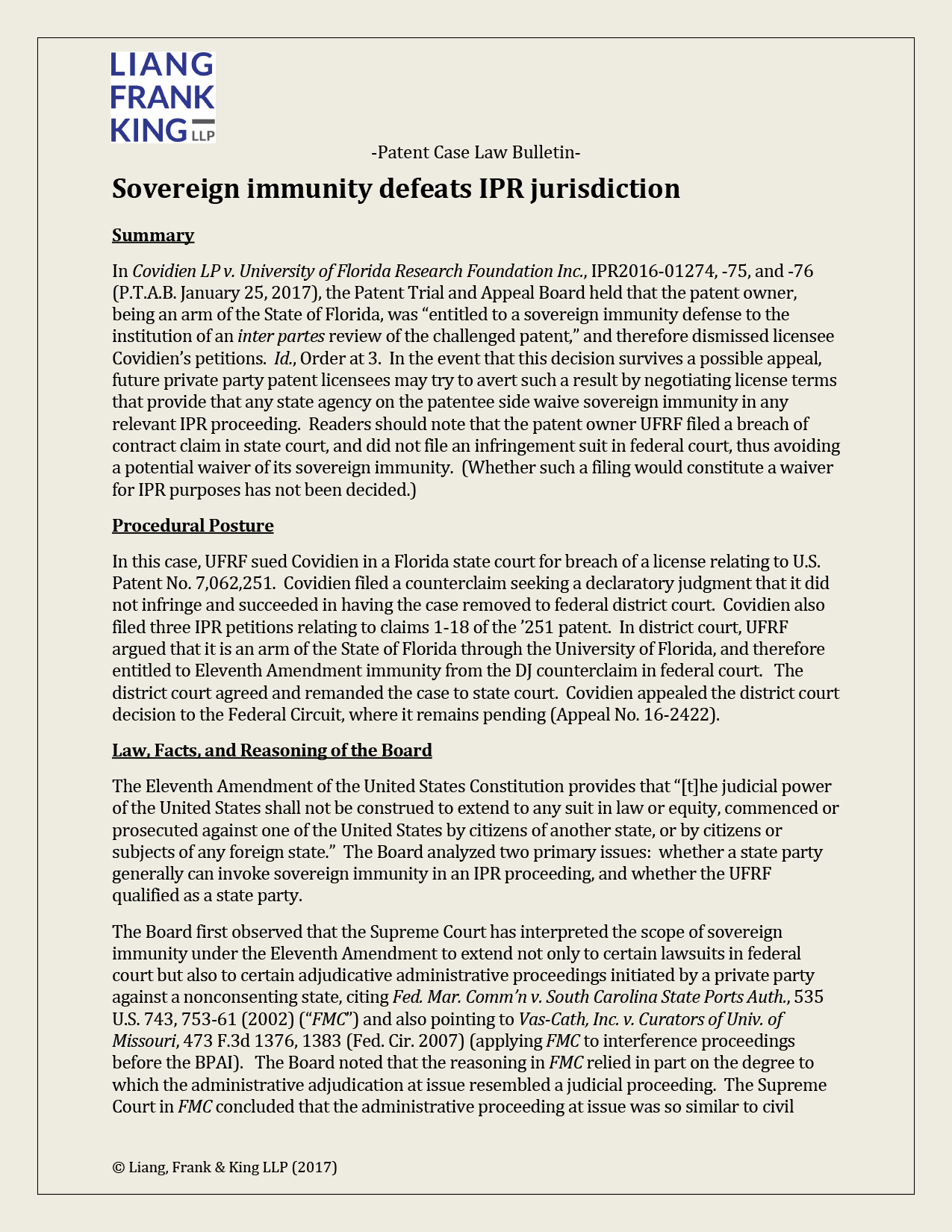Univ. Florida Research Found. (IPR/sovereign immunity defense)