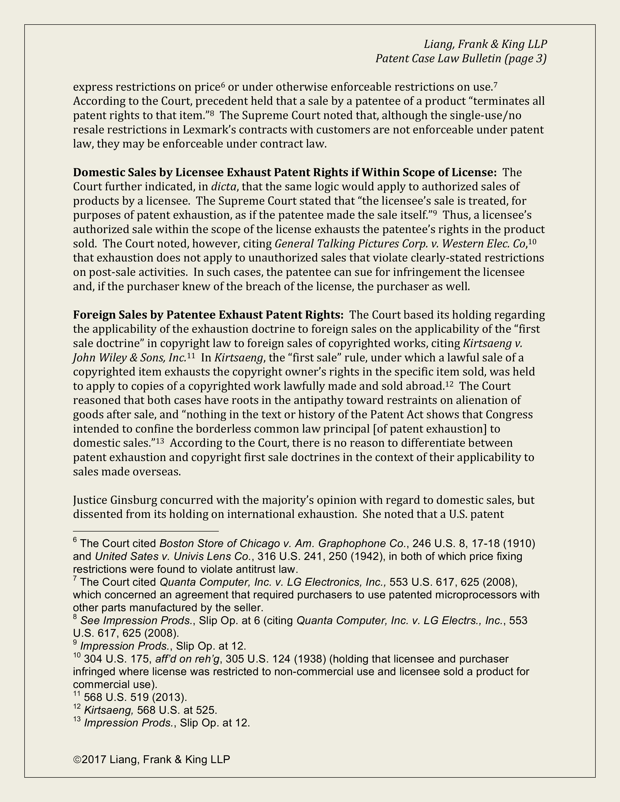 Lexmark International (Patent Exhaustion Doctrine)